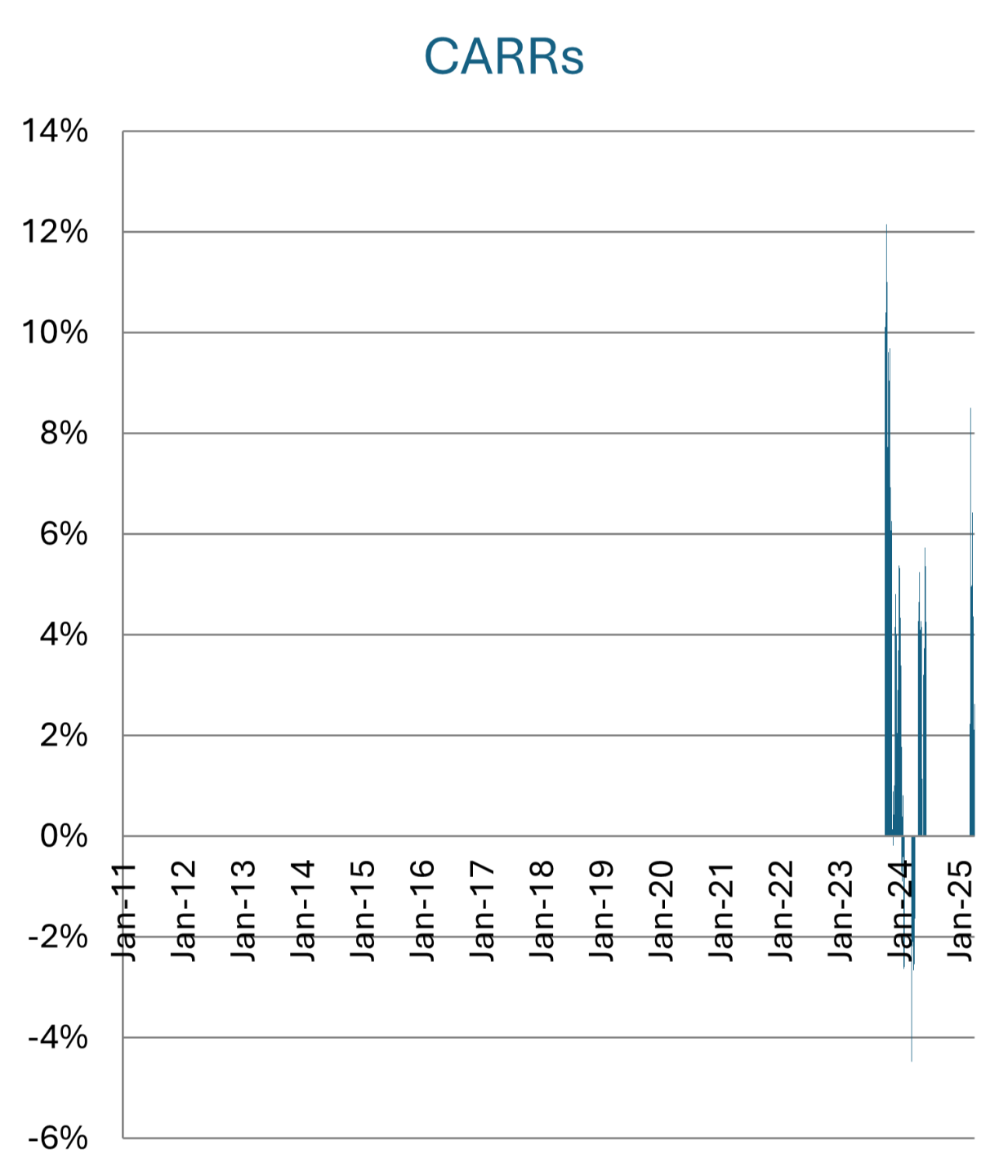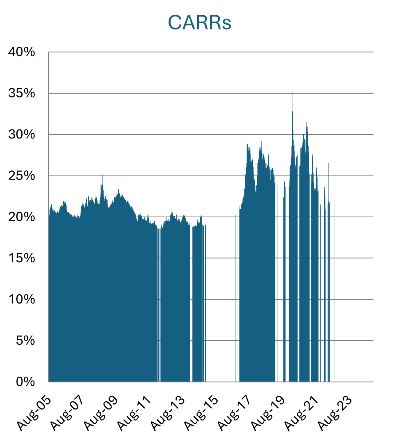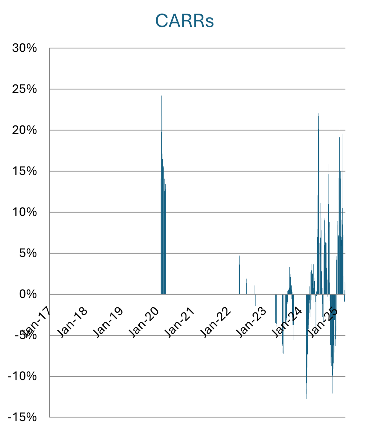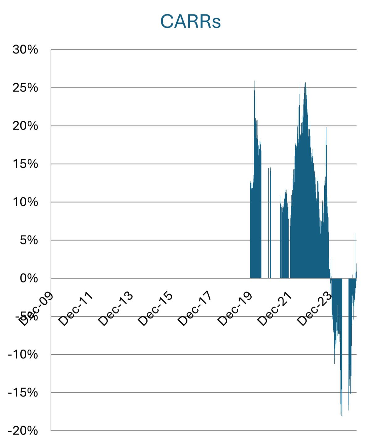 - The CARR was also calculated for each day of the case study for the S&P 500 (an index often used to measure market performance)