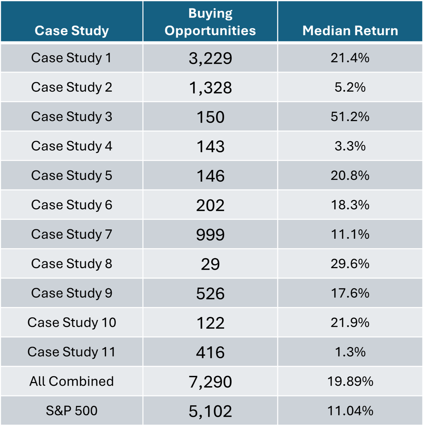 - Have met REAL Stock Investing Strategy buying criteria in the case study period